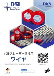 DSI LASER SERVICE(THAILAND)CO., LTD. のレーザー溶接用ワイヤ総合カタログの日本語版が完成しました。 金型か・プラント・航空機と多くの産業にパルスレーザー溶接のサービスを展開するDSI社だからこそ揃えることが可能な、豊富な材質と線径からご選定頂けます。