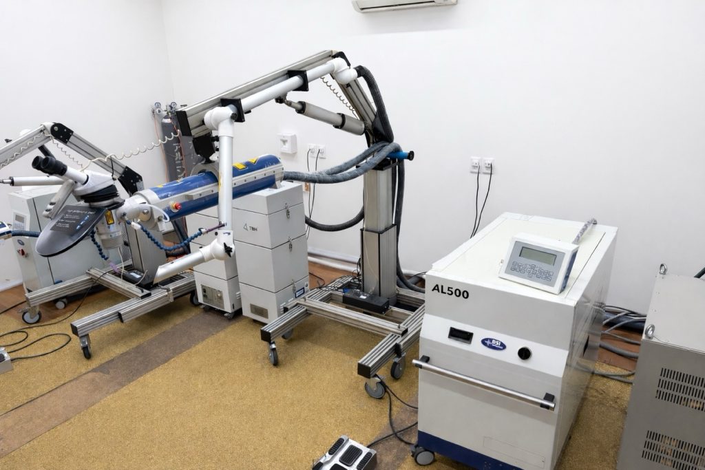 平均出力500Wのパルスレーザー溶接機を導入しました。直径0.8mmワイヤに対応し、大型部品への高効率な肉盛溶接が可能となります。2026年4月を目処に本機を活用した出張溶接サービスを開始予定で、プラントメンテナンス分野への本格展開を進めてまいります。なお、本設備は事業再構築補助金を活用しました。